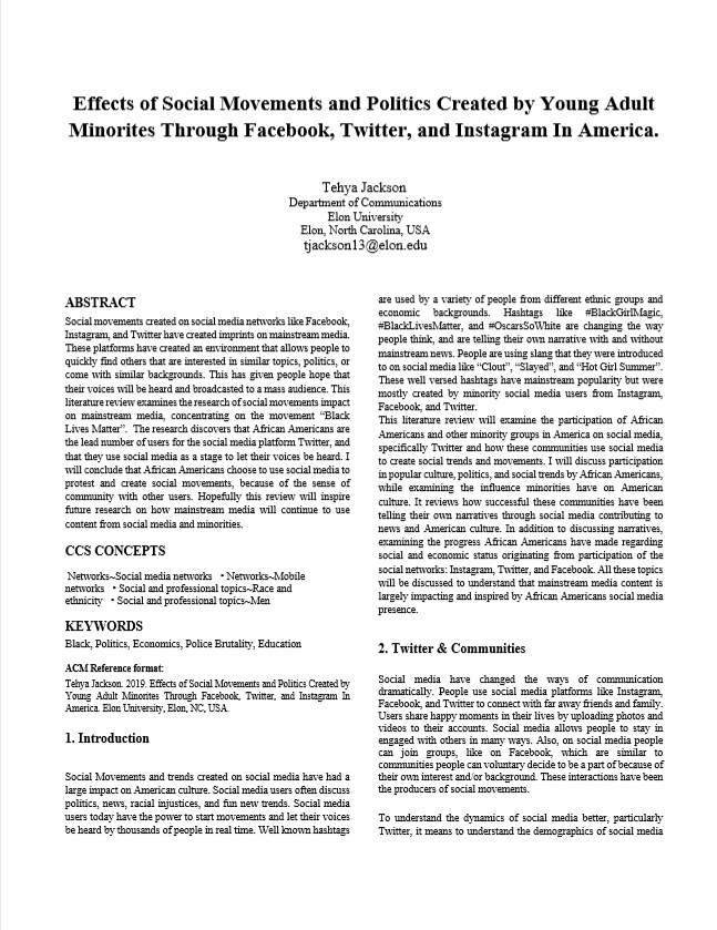 I wrote this paper called Effects of Social Movements and Politics Created by Young Adult Minorities Through Facebook, Twitter, and Instagram In America.